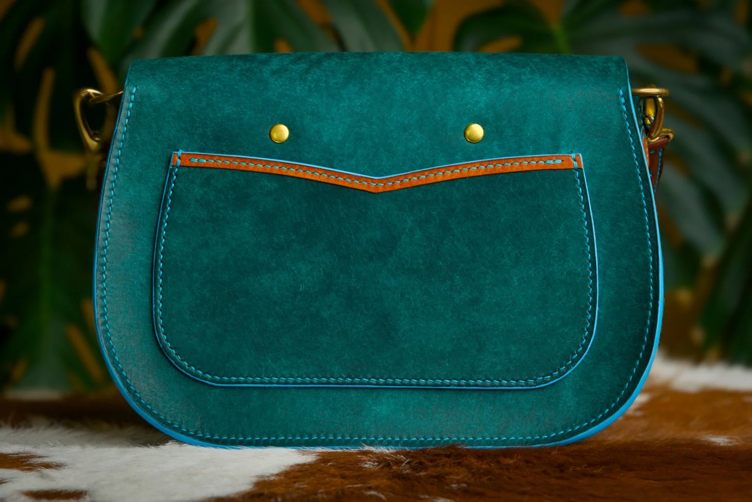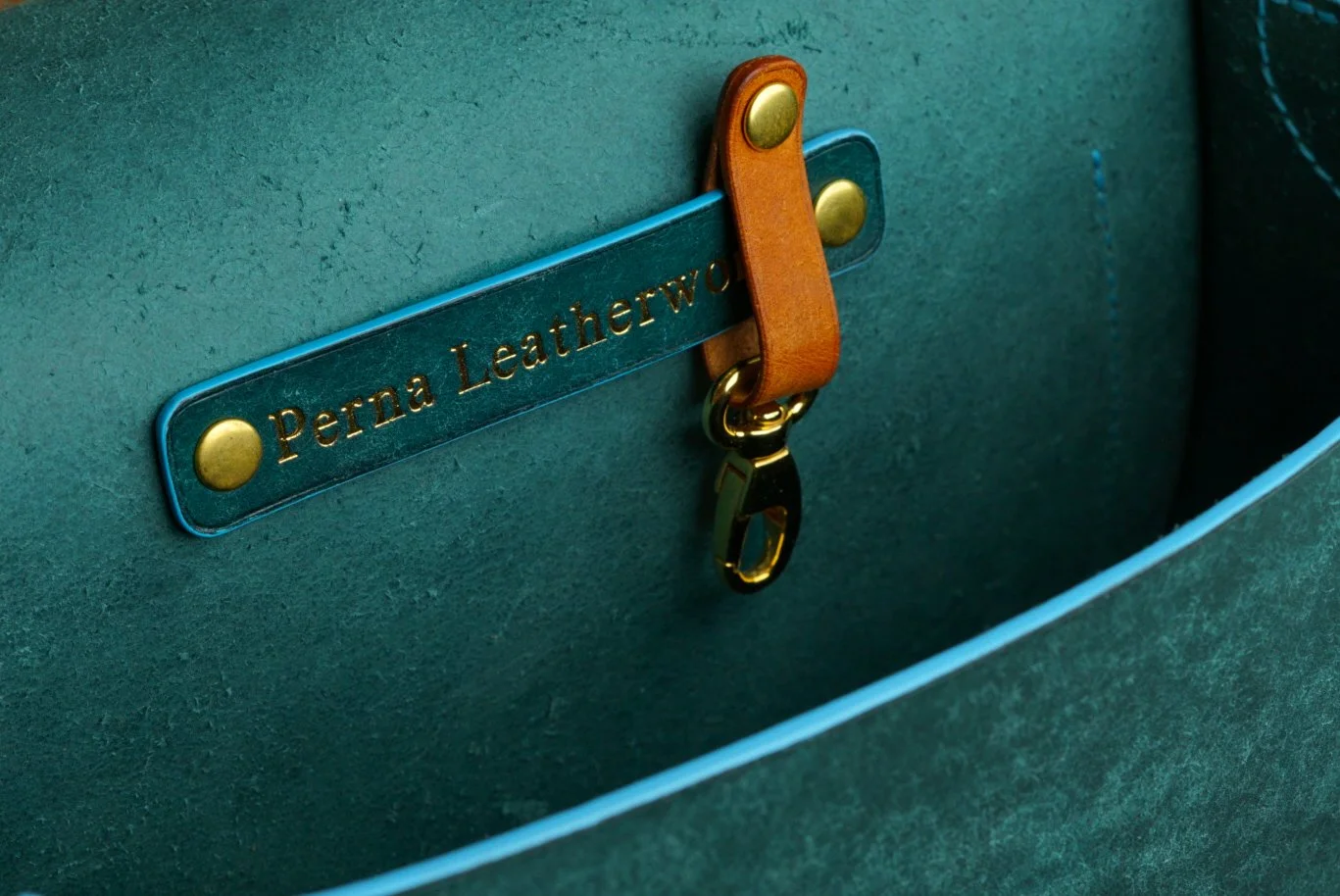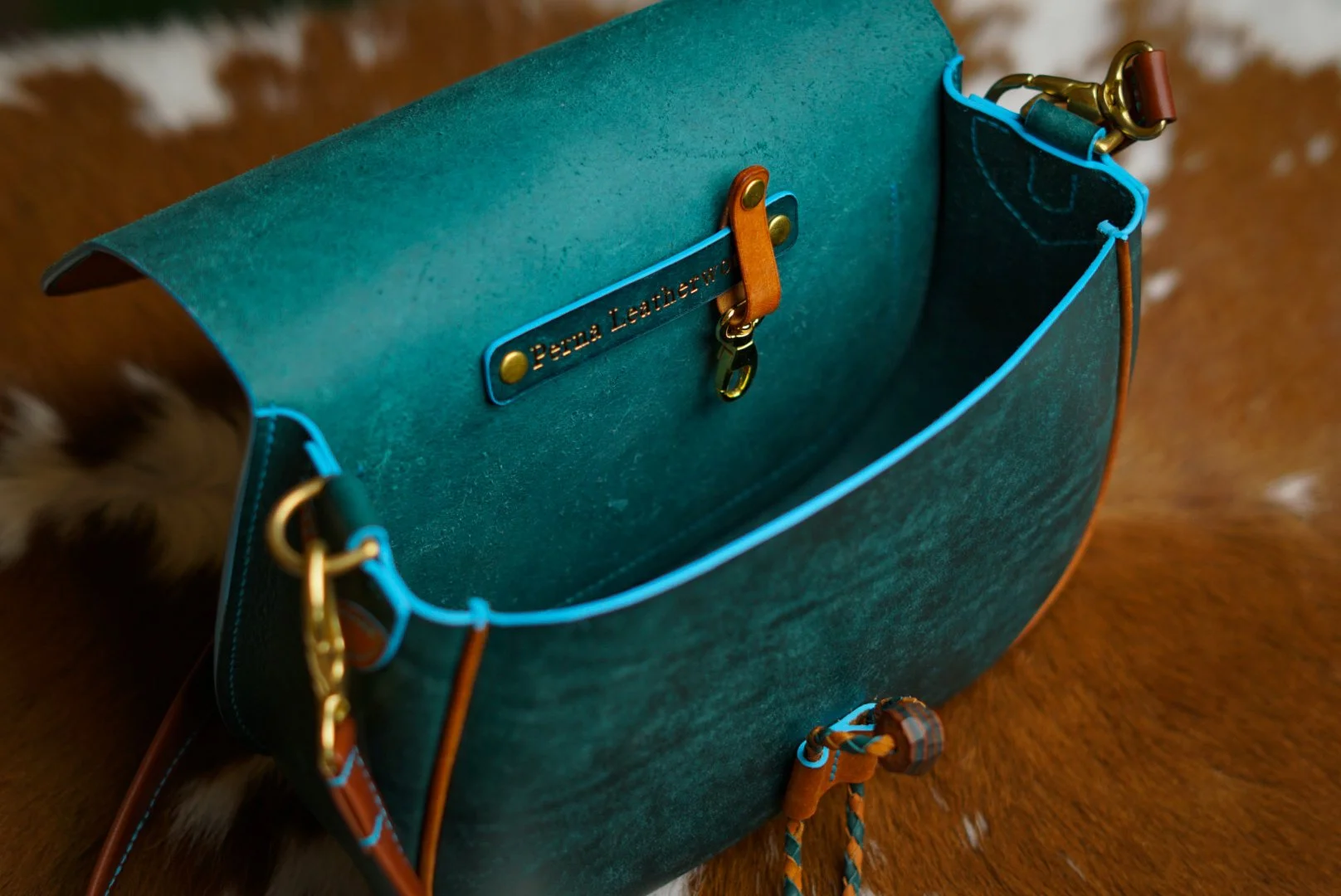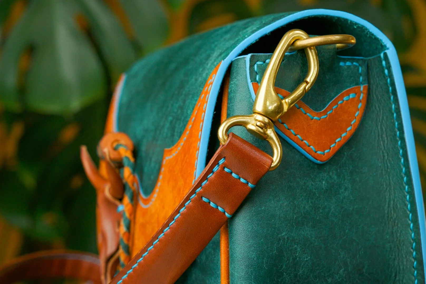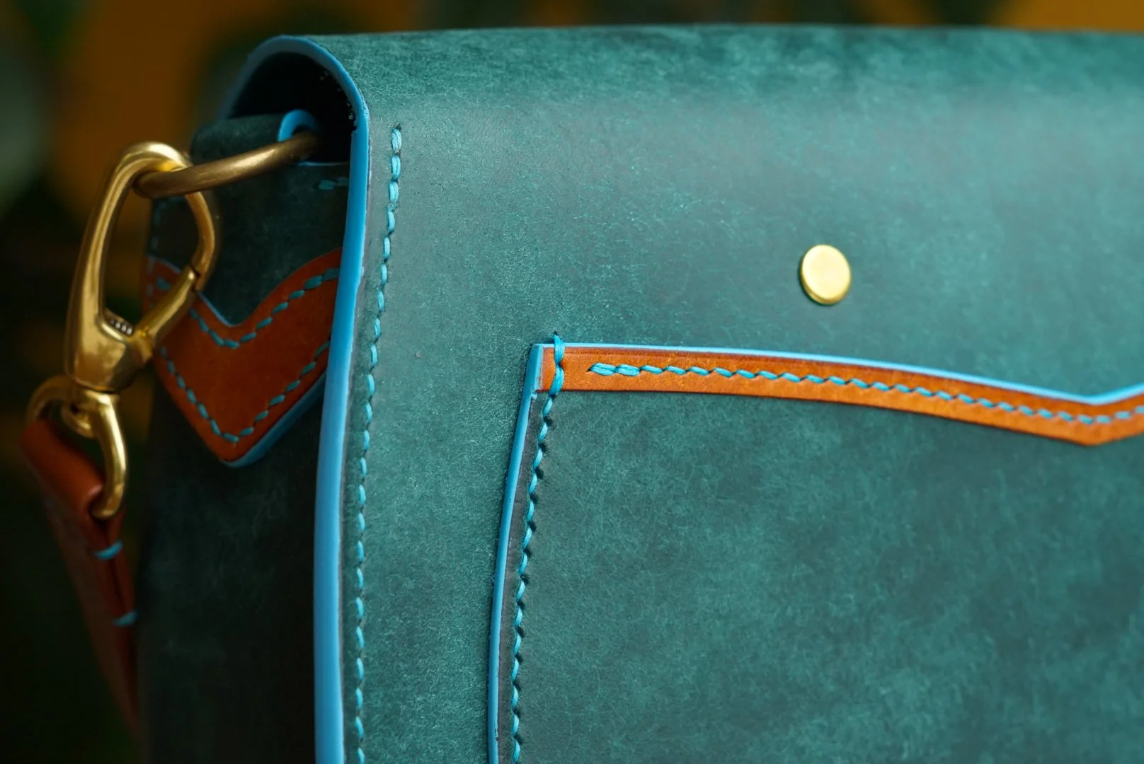 From there, it was about bringing everything together: I laid every stitch by hand with Ritza thread, painted the edges a bright sky blue with Vernis edge paint, and selected all solid brass hardware that will never chip while developing a beautiful patina along with the leather. This bag was entirely handmade with no shortcuts and I know you’ll be able to see the care and dedication in every stitch and fold.