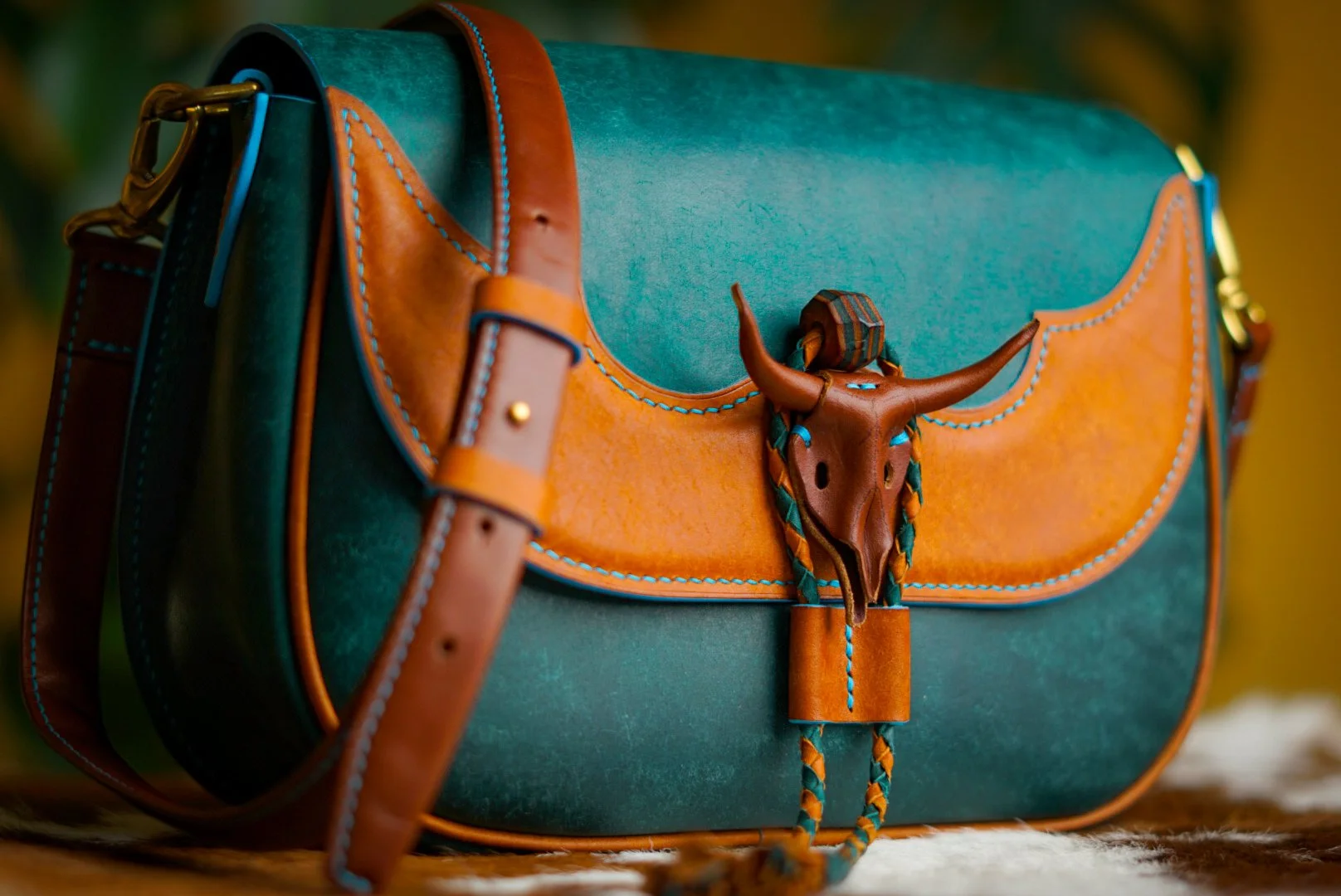 “From the choice of colors to the pop of the painted edge—and the folded/molded leather cow skull on the front—everything just comes together on this bag. It transcends what one typically expects to find in western-inspired leather, and importantly, it nails the basics: straight stitching, clean cuts and creases, topped off with some beautiful brass hardware. Really excellent work.” — Brad @leftfootleather